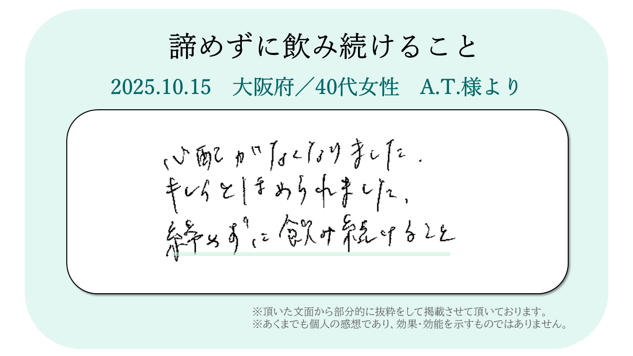 美ルート 口コミ◆継続 9年◆ 愛知県/60代/M.I.様よりいただいたお葉書より。 (あくまでも、個人のご感…
