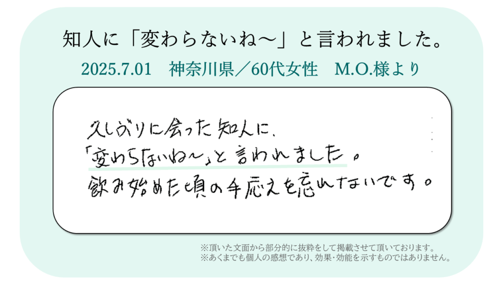 (あくまでも、個人のご感想であり、商品の効能効果を謳うものではありません。ご了承ください。)