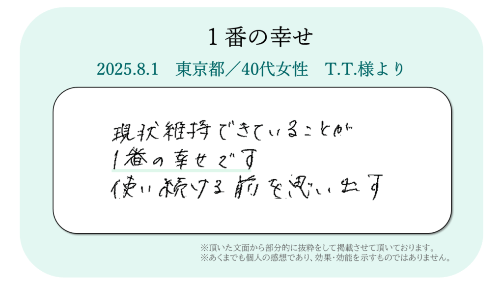 東京都/40代/T.T.様よりいただいたお葉書より。